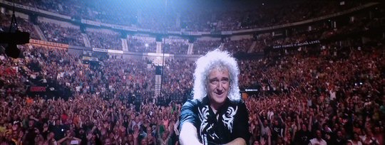 ![]() Brian May thrilled on electric and acoustic as the Music City tour stop. Our Queen historian from Atlanta also recalled how back in the day the band didn't really need more than their presence and musical prowess to win over an audience. He reminisced on how they paved they way as a stadium act breaking down international barriers everywhere they went on the strength of their captivating songs. So, it was kind of surprising to see all the bells and whistles the royal rockers had in store for their loyal subjects. A notable presence was a giant portion of the robot from the News of the World album cover that emerged from the floor with Lambert catching a ride on its noggin while remarking it "gave great head". At the start of "Bicycle Race" a flashy pink trike emerged in the same manner and the American Idol alum took it for a spin around the giant guitar shaped stage that jutted out far into the floor section of the arena. There was also ample use of lasers, lighting and confetti but the music remained the star of the show. "I know what some of you fans are saying: 'He's no Freddie Mercury,' " Lambert said acknowledging the difficult position he was in trying to stand in for the beloved singer who died from complications of HIV in November of 1991. Still, the Mercury made his presence felt via video screen first sharing a duet with guitarist Brian May on "Love of My Life" before trading lines with Lambert in the final verse of the set-closing "Bohemian Rhapsody".